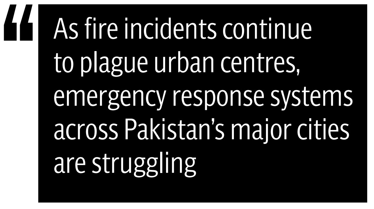In other cities too, this crisis of hoses and hurdles is endemic. Javed Khan, a local from Gulbahar, points out that the system often appears ill-prepared in the face of fire emergencies. “Sometimes even the water tanks of fire brigade vehicles are empty. This shows how serious the situation is,” he says. Khan also criticised the absence of aerial firefighting support. “Fires in congested inner-city areas require helicopter services, but we don’t have any. Our chief minister and provincial leadership are busy protesting for political causes instead of demanding essential facilities from the federal government.”