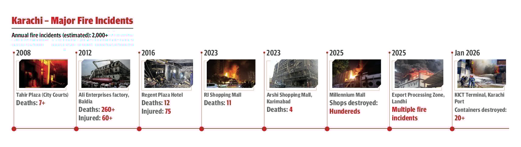 The latest reports claim that more than 2,000 small and large fire incidents are reported every year in Karachi. These incidents demonstrate that fire safety challenges are structural, spanning urban planning, electrical infrastructure, building codes, and regulatory enforcement. Experts argue that meaningful change requires a shift from reactive to proactive strategies. Regular fire safety audits, strict penalties for violations, upgraded electrical systems, and sustained public awareness campaigns could significantly reduce casualties and losses. Without proactive governance, densely populated urban centres remain vulnerable to recurring tragedies.