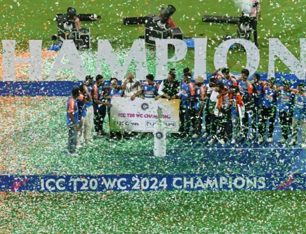India celebrate winning the T20 World Cup in 2024. Photo: AFP