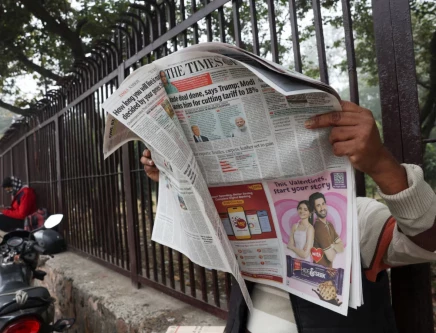 A man reads the latest edition of The Times of India newspaper, with the story on U.S. tariffs on Indian imports slashed to 18%, in New Delhi, India, February 3, 2026. PHOTO: REUTERS/Bhawika Chhabra