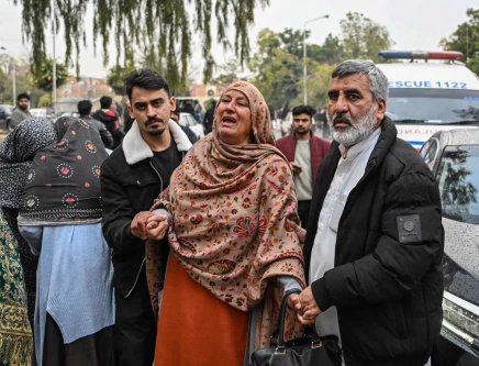 People mourn the death of their relatives following a suicide bombing at a Shiite mosque, outside a hospital in Islamabad on February 6, 2026. A suicide bombing at a Shiite mosque in Pakistan's capital Islamabad killed at least 31 people on February 6, local authorities said, with a police source saying more than 130 were wounded. Photo: AFP