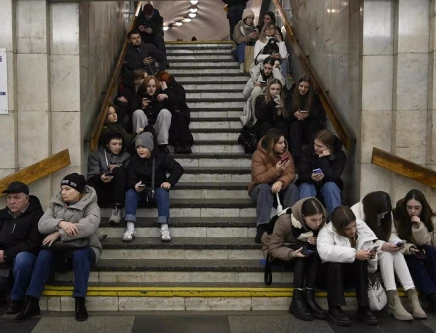 People take shelter in a subway station after a Russian missile attack in Kyiv, on December 29, 2023. PHOTO: AFP
