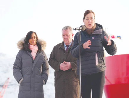 Danish Foreign Minister Lars Loekke Rasmussen (C), Canada's Foreign Minister Anita Anand (L) and Greenland's Minister for Foreign Affairs Vivian Motzfeldt attend a joint press conference in Nuuk. Photo: AFP