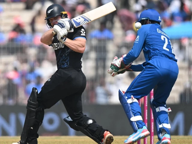 Afghanistan spinner Mujeeb Ur Rahman had New Zealand in early trouble when he struck on successive balls in the second over of the chase to dismiss Finn Allen, for one, and Rachin Ravindra, for a duck.