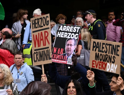 Thousands gathered in central Sydney on Monday to protest against Herzog's visit to Australia, which comes after a mass shooting at a Jewish religious event at Bondi Beach in December that killed 15 people.