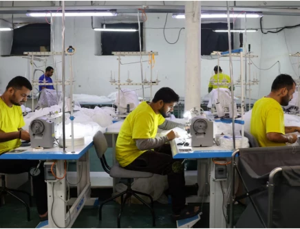 Raj, 32, Shail, 30, and Gaurav, 23 (no last names given), migrant workers from India, sew tulle fabric at a textile factory in the town of Balashikha outside Moscow, Russia, January 20, 2026. PHOTO: REUTERS
