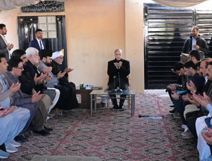 PM Shehbaz offers Fateha for the martyrs of suicide attack on Imam Bargah Khadija-ul-Kubra. Photo: x.com/GovtofPakistan
