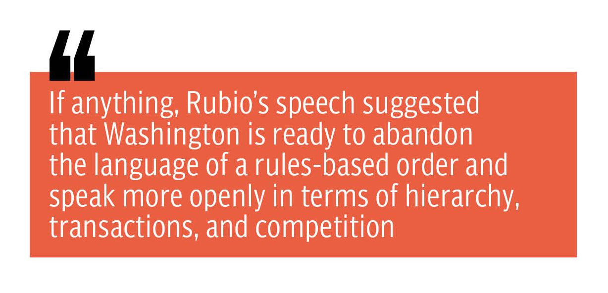 Munich, this year, therefore, was less about a concrete policy shift than a change in the moral vocabulary of Western power. If anything, Rubio's speech suggested that Washington is ready to abandon the language of a rules-based order and speak more openly in terms of hierarchy, transactions, and competition.