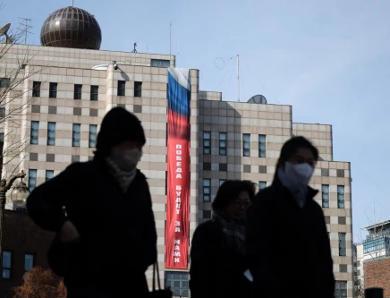 The roughly 15-metre (49.21 ft) banner, in the colours of the Russian flag and written in Russian, was hung on the embassy's outer wall in central Seoul ahead of the fourth anniversary of Russia's invasion of Ukraine on Tuesday.