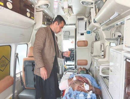 A paramilitary soldier receives medical aid in an ambulance in Chaman. Photo: Reuters