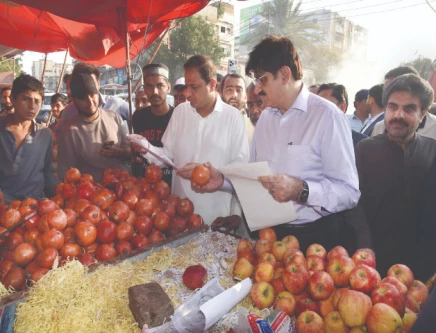 After Burns Road, the chief minister proceeded to Empress Market, where shopkeepers welcomed him warmly. He checked fruit rate lists and compared them with actual selling prices. CM Shah also inquired about apples and pomegranates, being sold at Rs265 and Rs300 per kilogram, respectively, and reviewed prices of vegetables including bottle gourd at Rs58/kg, eggplant at Rs52/kg, and carrots at Rs46/kg. During the visit, CM Shah inspected the Karachi Metropolitan Corporation's Price Complaint Cell at Empress Market and reviewed the under-construction meat market.