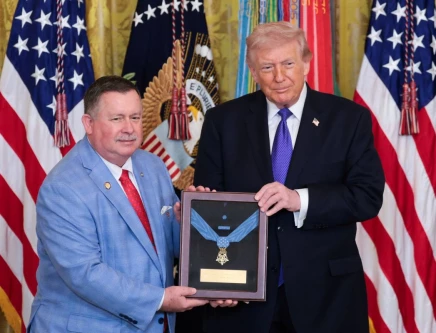 US President Donald Trump awards the posthumous Medal of Honor to a family member of US Army Master Sergeant Roderick (Roddie) Edmonds during a ceremony at the White House in Washington, DC, US, March 2, 2026. PHOTO: REUTERS