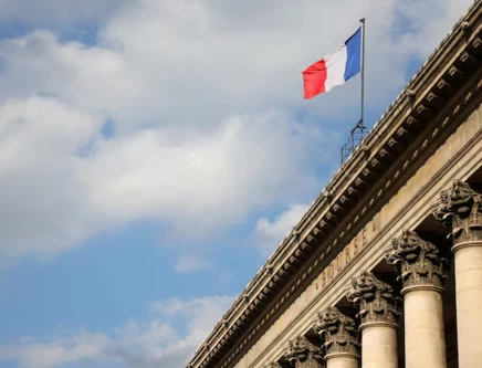 A view shows the French national flag on the top of the Palais Brogniard, former Paris Stock Exchange, located at Place de la Bourse in Paris. Photo: Reuters