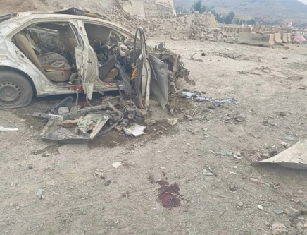 The wreckage of a vehicle used in the bombing lies at the attack site in Miranshah in North Waziristan district. Photo: Express