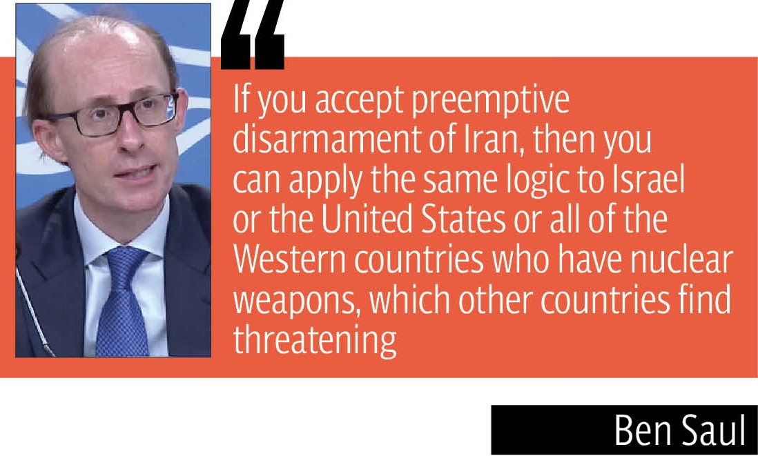 “Nobody says Iran currently has nuclear weapons,” Saul noted. “There’s no evidence that Iran has given an order to use weapons it doesn’t have against Israel or the US. So none of the conditions for self-defence against an imminent attack have been met.”