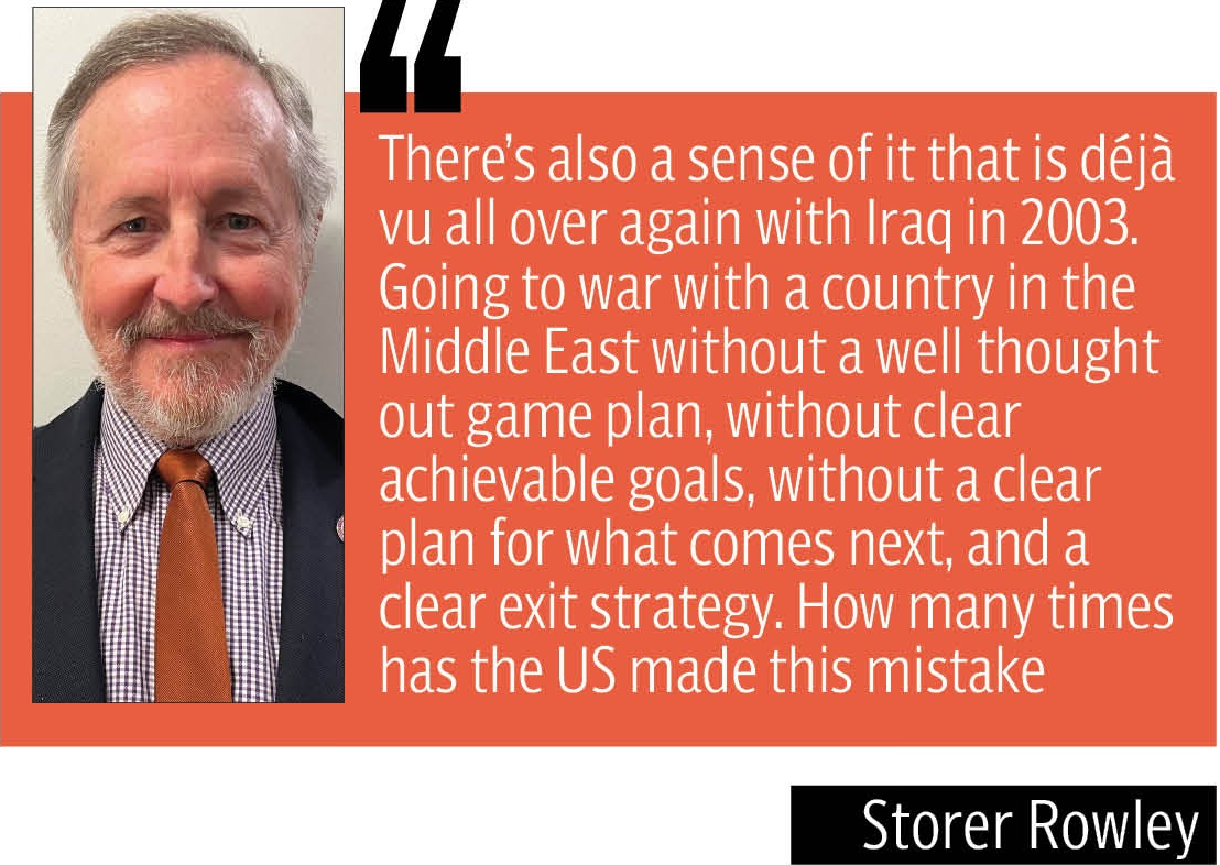 “There’s also a sense of it that is déjà vu all over again with Iraq in 2003,” Rowley noted. “Going to war with a country in the Middle East without a well thought out game plan, without clear achievable goals, without a clear plan for what comes next, and a clear exit strategy. How many times has the US made this mistake?”