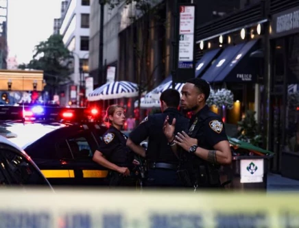Police officers gather during a reported active shooter situation in the Manhattan borough of New York City, U.S. July 28, 2025. Source: Reuters