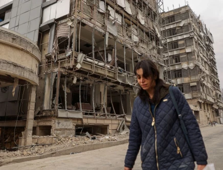 A woman walks on the street following an Israeli and U.S. strike on Gandhi Hotel Hospital, amid the U.S.-Israel conflict with Iran, in Tehran, Iran, March 2, 2026.
