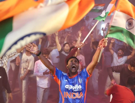 As the victory became inevitable late Sunday, thousands of delirious fans converged on Delhi's India Gate monument waving tricolour flags, beating drums and dancing to blaring Bollywood hits.