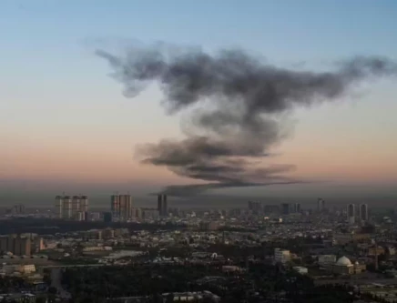 AFP photographer captures smoke rising near Erbil International Airport after an explosion on March 1. PHOTO: AFP