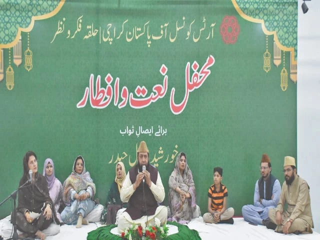 Arts Council of Pakistan Karachi, in collaboration with Halqa-e-Fikr-o-Nazar, organized a spiritually uplifting "Mehfil-e-Naat and Iftar for the Esal-e-Sawab of Khurshid Iqbal Haider" at the Haseena Moin Hall, Ahmed Shah Building.