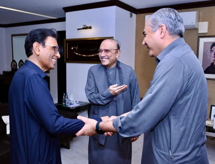 President Zardari urges 'unity, stronger peace efforts' in meeting with Khalid Maqbool, Mohsin Naqvi