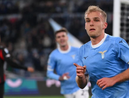 Gustav Isaksen (R) scored Lazio's winning goal against AC Milan. Photo: AFP
