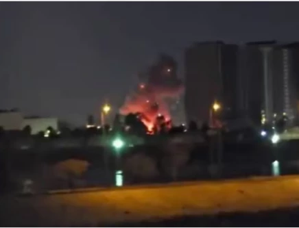 Smoke and fire rise during reported drone and rocket strikes at the U.S. embassy, according to Iraqi security sources, in Baghdad, Iraq, in this still image obtained from a social media video released on March 17, 2026. PHOTO: REUTERS