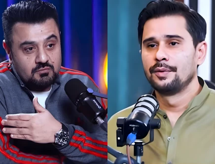 TV host and stand-up comedian Tabish Hashmi and actor-comedian Ahmad Ali Butt during a podcast. PHOTO: YOUTUBE