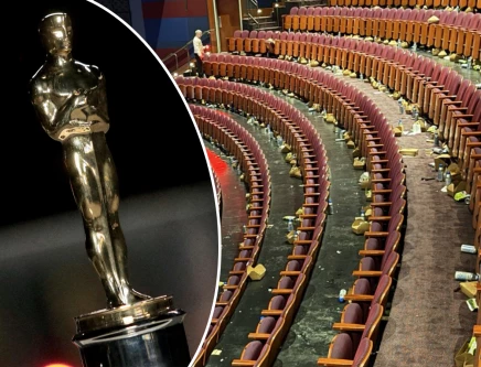 The image, shared by Next Best Picture editor-in-chief Matt Neglia, captures rows of seats inside the Dolby Theatre covered in discarded snack packaging and other debris following the conclusion of the awards. The scene contrasts with the polished presentation typically associated with the Academy Awards broadcast.