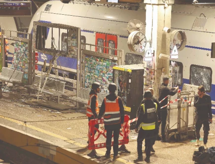Israeli security forces and rescue workers gather at a train station that was hit by shrapnel after an Iranian strike in Tel Aviv. Photo: AFP