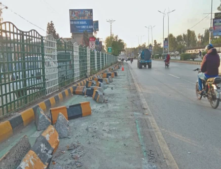 The biker lane, marked in green and separated by boundary blocks, was introduced by the Rawalpindi Development Authority (RDA) to keep motorcyclists on the extreme left side of the road. However, most riders ignored the restriction and continued to drive in the middle or right lanes.