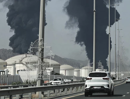Smoke rises from the direction of an energy installation in the Gulf emirate of Fujairah on March 14, 2026. PHOTO: AFP