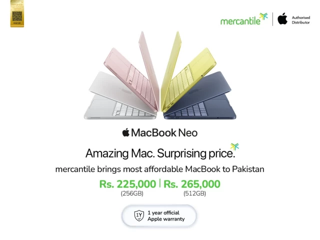 Mercantile, an Apple Authorised Distributor & Service Provider leads the launch of MacBook Neo in Pakistan, bringing not just a new device, but a shift in how users experience Apple technology locally. With a one year local warranty, one of the biggest barriers to purchase - after-sales reliability - is effectively addressed.