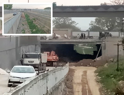 All rails of the track have been uprooted, and the route is being converted into a service road for the overhead bridge and underpass.