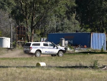 A police vehicle at the scene where police said they believe fugitive gunman Desmond Freeman, who had been on the run for seven months for allegedly killing two police officers, was shot dead in a police operation in Porepunkah, Australia, March 30, 2026. PHOTO: REUTERS