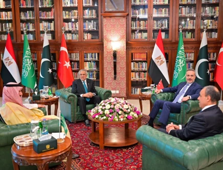 Foreign ministers of Pakistan, Saudi Arabia, Türkiye, and Egypt during moot in Islamabad on March 29. Photo: X/MOFA