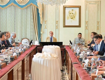 rime Minister Shehbaz Sharif chairs a meeting in Islamabad on Wednesday to review a strategy aimed at safeguarding the country from financial and economic impacts of the regional situation. Photo: APP