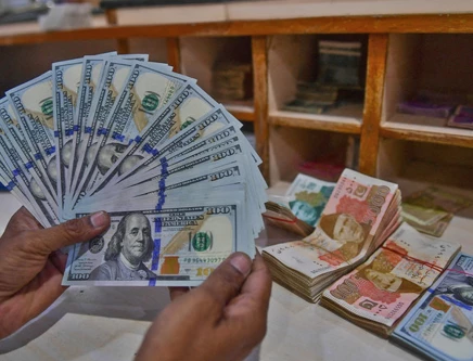 A foreign currency dealer counts US dollars at a shop in Karachi, Pakistan, on May 19, 2022. Photo: AFP/File