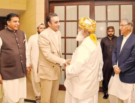 According to JUI-F, the meeting lasted around two hours, including a brief one-on-one interaction of approximately 10 minutes between the PPP chairman and the JUI-F chief.