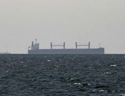 A cargo ship in the Gulf, near the Strait of Hormuz, as seen from northern Ras al-Khaimah, near the border with Oman’s Musandam governance, amid the U.S.-Israeli conflict with Iran, in United Arab Emirates, March 11, 2026. PHOTO: REUTERS
