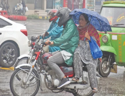 Commuters travel in Lahore amid moderate rain. The Met Office predicted similar conditions for the next 24 hours. Photo: Online
