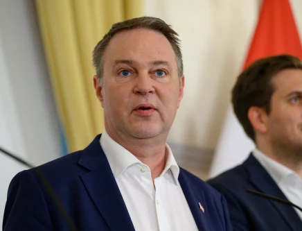 Austria's Vice Chancellor Andreas Babler of the Social Democrats speaks during a press conference on plans to ban social media for children under 14 years of age in Vienna, Austria, March 27, 2026. ُPHOTO: REUTERS