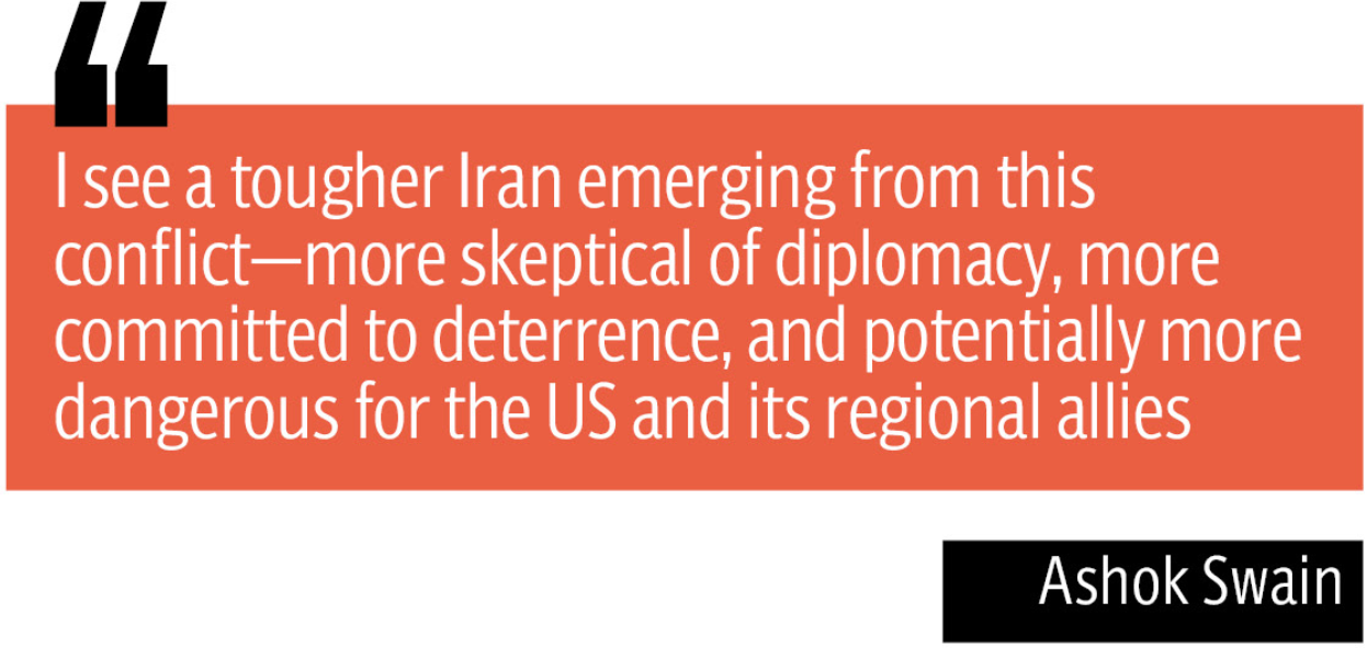 Even if the war ends soon, Swain warned that Iran will emerge more securitized, more in control, and more convinced that survival itself equals victory. “If it drags on, the regime may take damage, but it can still justify internal consolidation and external retaliation. Either way, I don’t see a more moderate Iran — only a harder, more suspicious, and more dangerous one for the US and its allies,” he concluded.