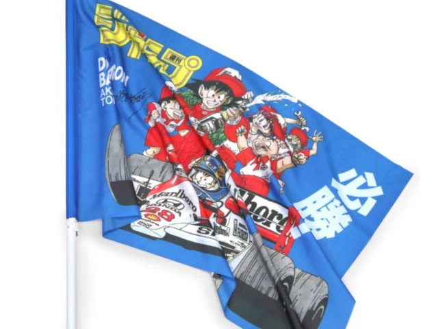 A rare Dragon Ball F1 flag illustrated by Akira Toriyama has sold for nearly $80,000 at auction, highlighting continued demand for unique crossover memorabilia between motorsport and anime.