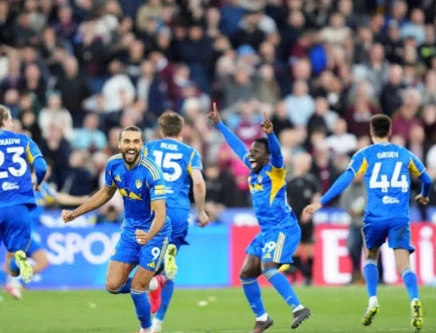 Leeds players celebrate after their dramatic 4-2 penalty shoot-out win over West Ham. Photo: AFP/FILE