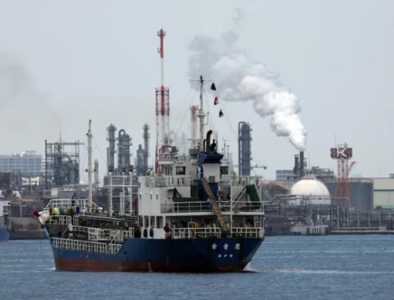 A small tanker sails near an oil refinery, in the Keihin Industrial Zone in Kawasaki, south of Tokyo, Japan March 17, 2026. PHOTO: REUTERS