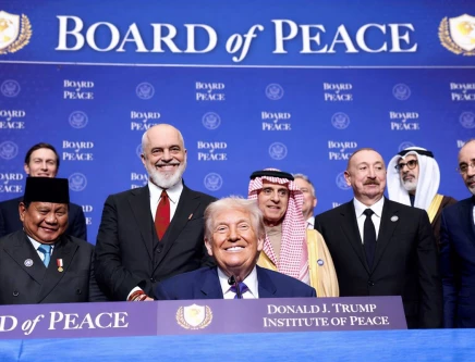 US President Donald Trump, Indonesia's President Prabowo Subianto, Albania's Prime Minister Edi Rama, Saudi Minister of State for Foreign Affairs, Cabinet Member, and Climate Envoy Adel Al-Jubeir, Azerbaijani President Ilham Aliyev, and Jordan's Foreign Minister Ayman Safadi attend the inaugural Board of Peace meeting at the US Institute of Peace in Washington, D.C., US, February 19, 2026. REUTERS