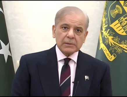 Prime Minister Shehbaz Sharif addresses the nation on Friday. SCREENGRAB