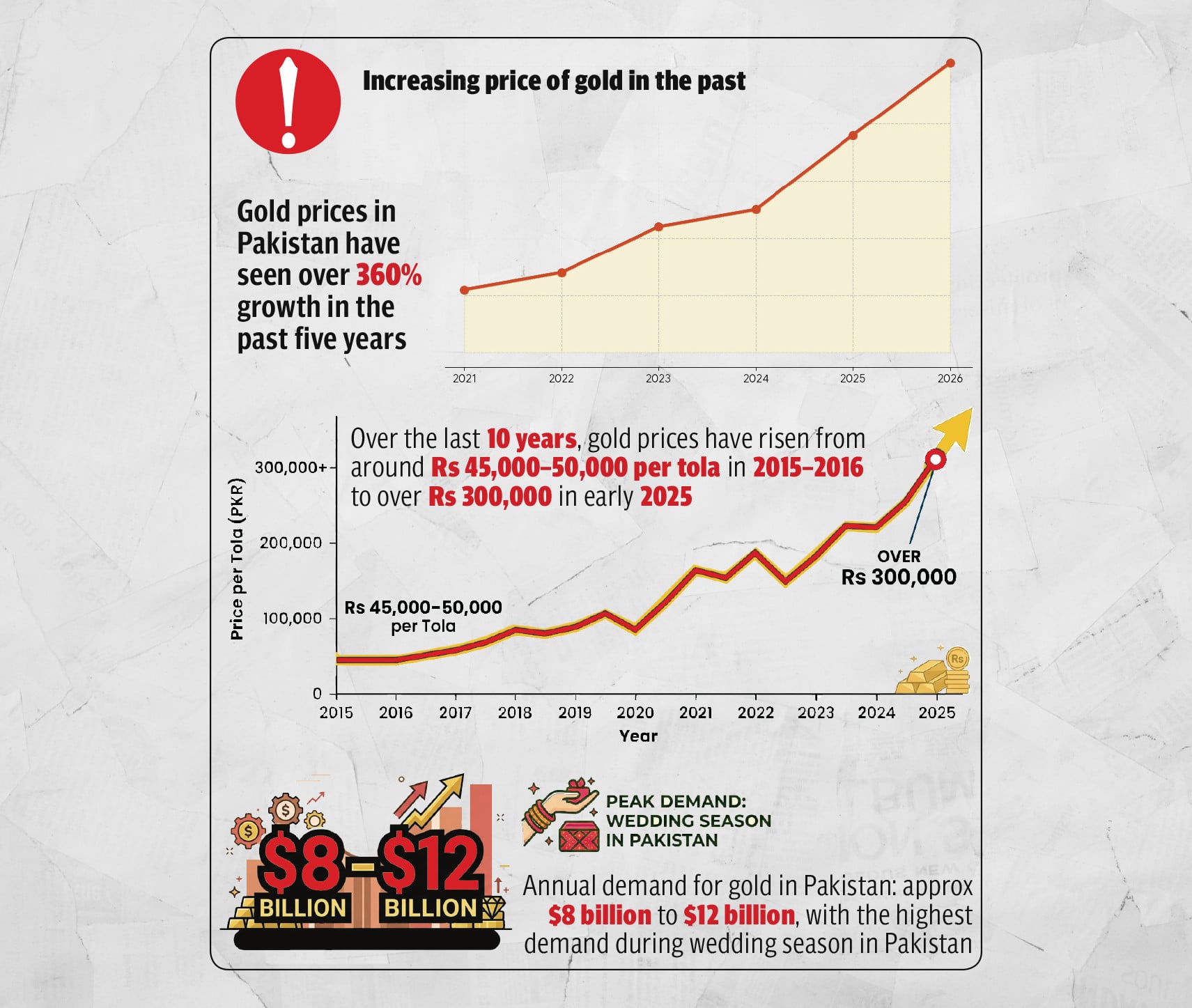 The wedding industry in Pakistan is a massive, booming, multi-billion-rupee economic engine, with annual spending estimated between 900 billion rupees and over one trillion rupees. Yet, the soaring gold prices—are not only affecting it but also personal finance because gold acts as a personal wealth fund for families.